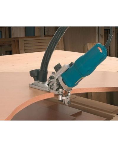 Trimming with the straigh bit The tiltable motor body permits the trimming of straight edges with the cylindrical bit as well as the excess surface. Excess panel is trimmed with the motor body in the vertical position, and edges with the motor body inclined to 91.5º, i.e. at 1.5º below the board surface, thereby avoiding damage.
