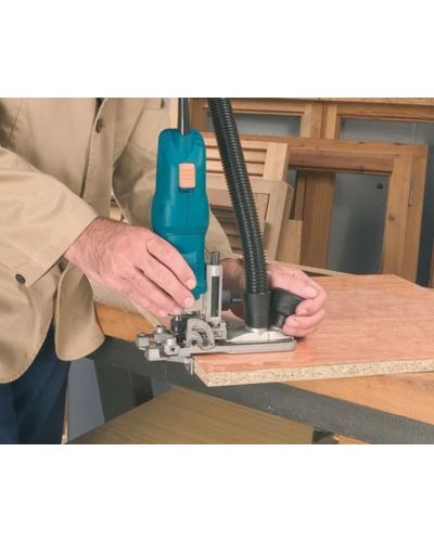 The only trimmer capable of trimming the excess of the panel or edge surfaces flat or at any angle, without changing the bit. Its wide base provides effective guiding and easy trimming. It offers numerous additional trimming possibilities, thanks to the unique tilting and adjustment system. Equipped with a powerful 750 W motor with electronic speed adjustment and constant torque control for a constant motor speed under load. External dust collector connection.