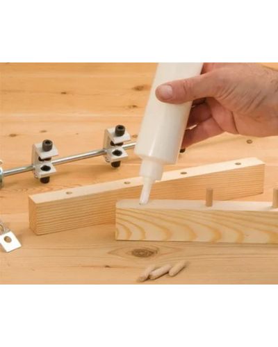 Details: Content250 ml plastic bottleBiscuit and dowel nozlePointed nozle60 mm glue rollerGlue brushAll complete with covers.