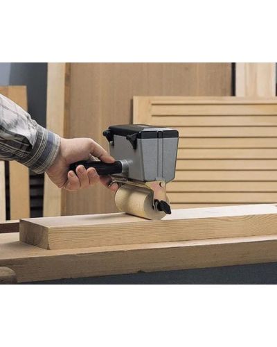 Hand gluer for glueing large surfaces using vinyl glue (White). Lower roller width: 122 mm. Equipped with trigger shut-off device to stop the flow of glue. Also comes with a support where it can be left when not in use, thus keeping the working area and the machine clean. Without upper roller.