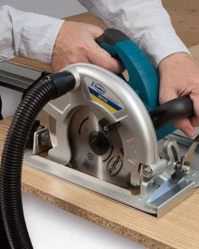 Its powerful motor (1,200 W) allow to cut up to 55 mm. depth, with cutting angle adjustable till 45°. Depth cutting and inclination are adjustable with micrometric scale. Equipped with riving knife, paralel guide, saw blade protection and safety against accidental start up. Provided with a dust collector connection.